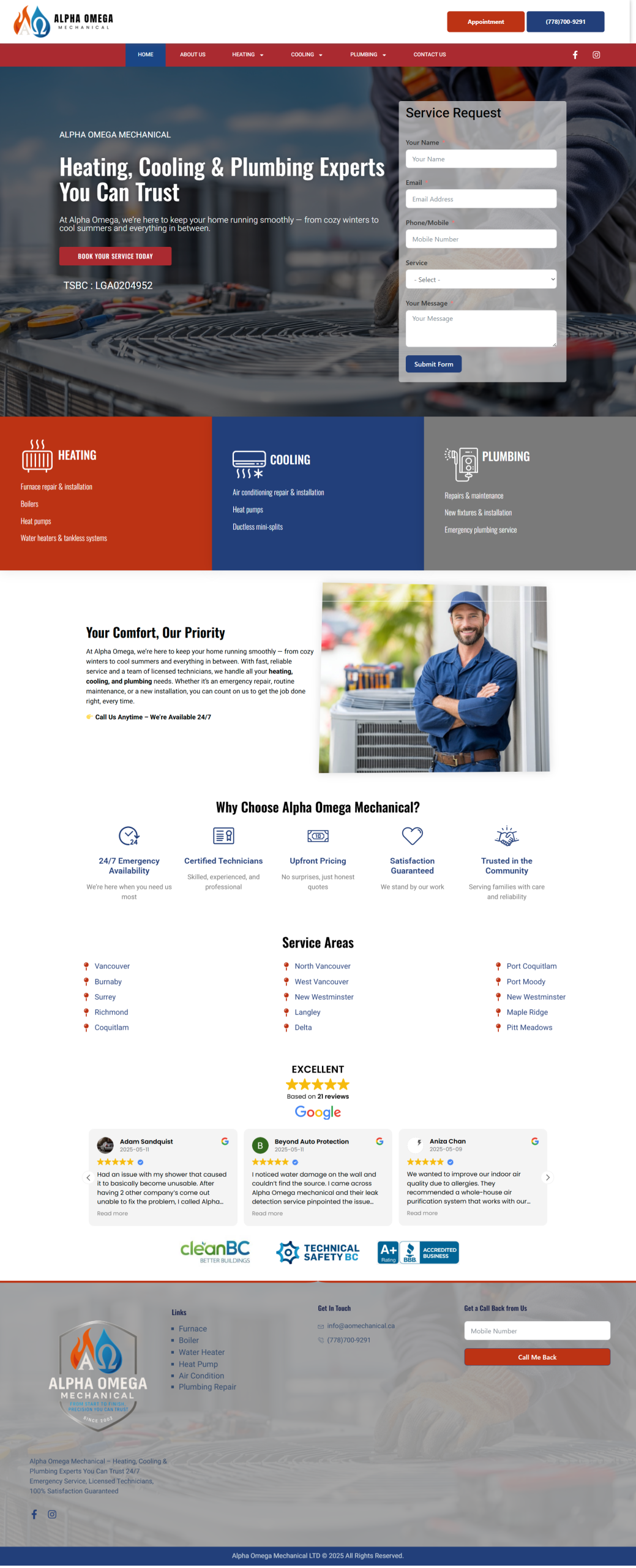 🔍 SEO Optimization: Applied location-focused SEO strategies, including service-based keywords and structured data, to boost visibility in HVAC and mechanical service searches across the Greater Vancouver area.