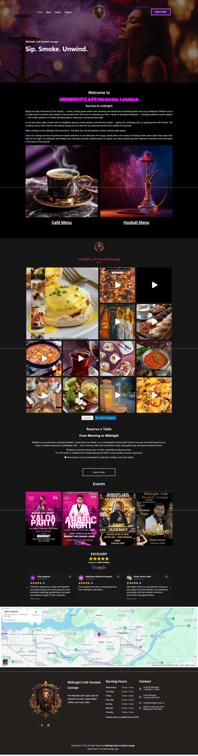 🎯 Objective: Design a cozy, atmospheric website to reflect the brand’s late-night vibe, showcase menu offerings, and promote local events.